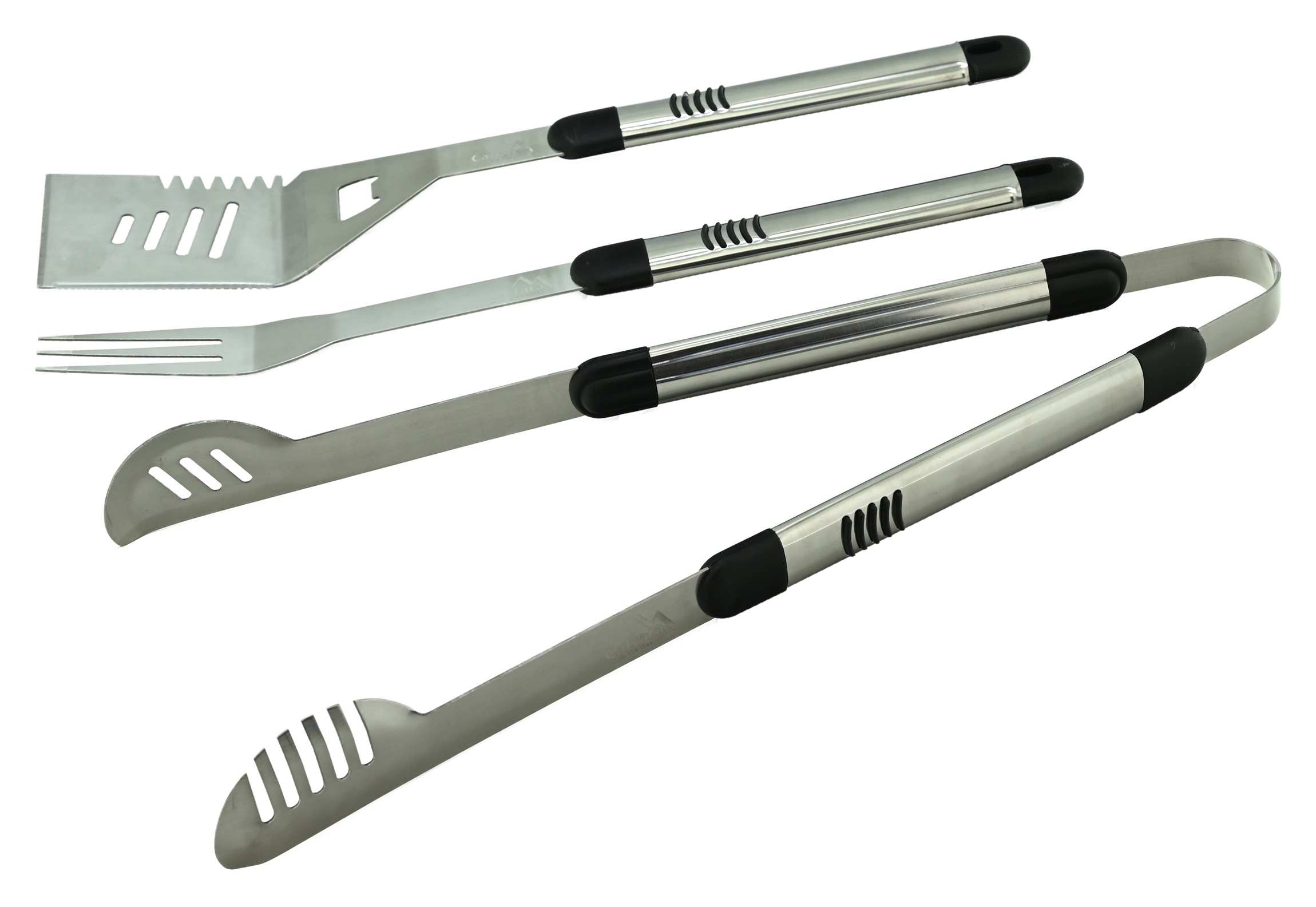 Kleště jsou speciálně tvarovány pro jistý úchop nejrůznějších pokrmů a mají délku 49 cm. Dvouzubá vidlička s délkou 47 cm. Obracečka délky 48 cm s precizně zabroušenou hranou odtokovými otvory pro otáčení masitých, ale i jiných pokrmů. Odtokový otvor je užitečný i jako otvírák na lahve.