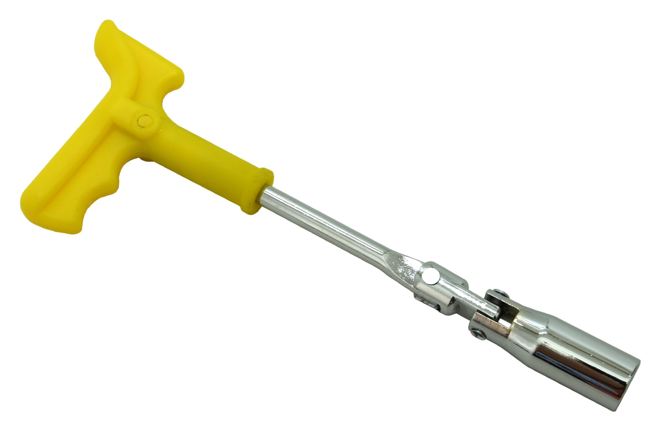 Kovový klíč (16 mm) určený k montáži nebo demontáži zapalovacích svíček automobilu. Kloubová redukce a speciální ergonomické zakončení klíče pro snazší manipulaci.