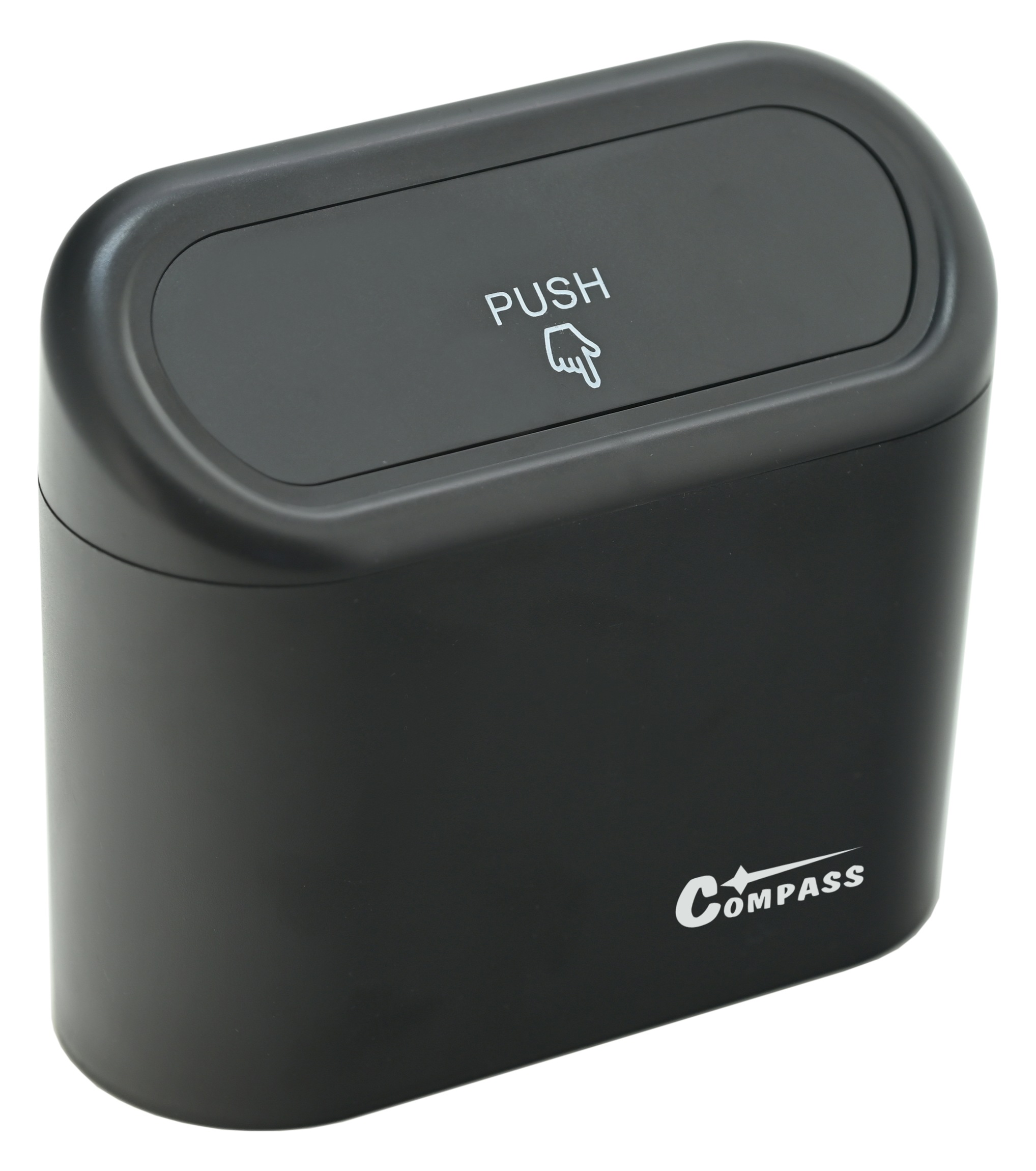 Odpadkový koš se sklápěcím víkem, vhodný pro udržování pořádku ve vozidle.