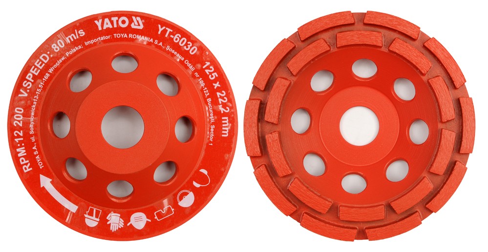 Kotouč diamantový brusný dvouřadý, 125 x 22.2 mm, výška segmentů 5 mm, max. rychlost 12 200 ot/min.
