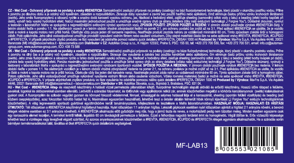 - Wet coat - ochranný přípravek na coatingy a vosky.
