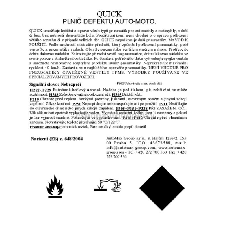 Odstraní defekt a nahustí pneumatiku bez demontáže. Nepoškozuje duše. Neodmyslitelný pro motocyklisty.
