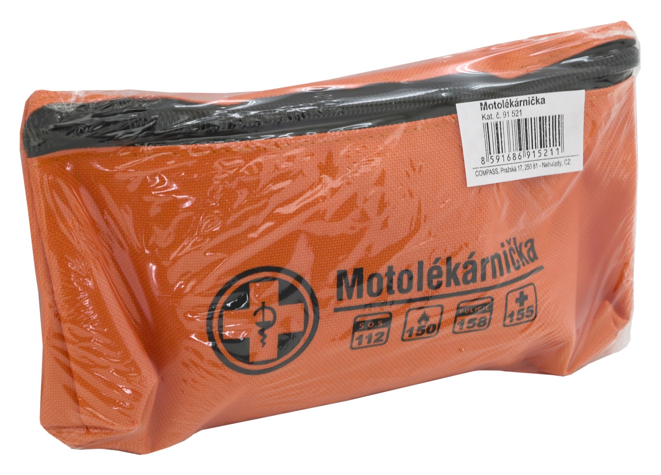 Lékárnička pro motocykly, obsah odpovídá vyhlášce č. 206/2018 sb. Ministerstva dopravy. Provedení textilní brašna.