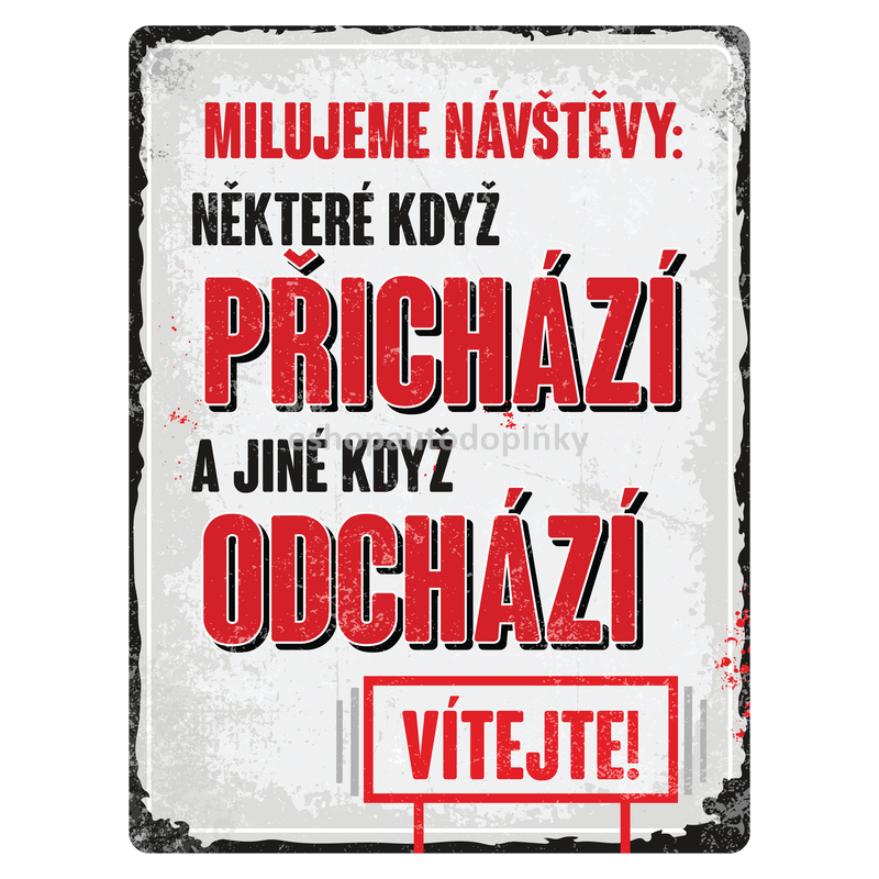 Retro cedule plech CZ 300x400 Milujeme návštěvy