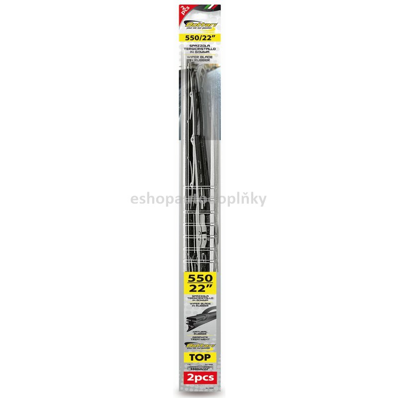 Klasické ramínkové stěrače TOP opatřené grafitovou gumičkou. Balení obsahuje 2 ks stěračů plus adaptéry. 55 cm