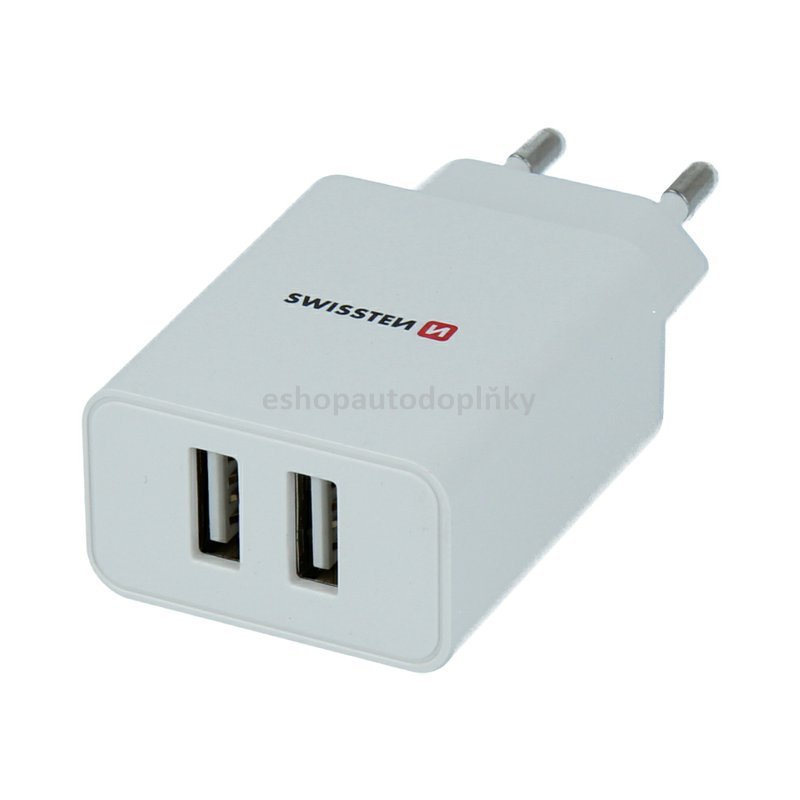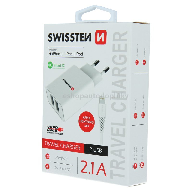 Swissten 22055000 Síťový adaptér SMART IC 2xUSB 2,1A +kabel USB/Lightining MFi 1,2m bílý