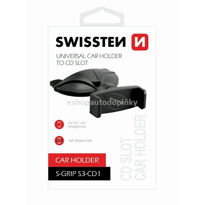 ržák do auta SWISSTEN S-GRIP S3-CD1 je určen pro instalaci do slotu CD přehrávače.