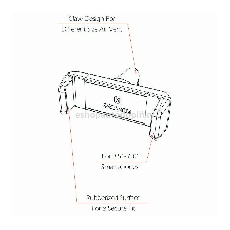 Je to kvalitní, spolehlivý a praktický držák na mobil. Držák snadno a rychle zacvaknete prakticky na jakoukoli mřížku ventilace každého auta. Stejně jednoduše ho můžete v případě potřeby také sundat. Univerzální držák do ventilace Swissten S-GRIP AV-1 je vhodný pro jakýkoli typ a druh mobilního telefonu s úhlopříčkou 3,5“ – 6,0“. Držák má praktická posuvná ramena, mezi která telefon snadno zacvaknete. Takto uchycený telefon bude v držáku stabilně a bezpečně držet na svém místě i při ostřejší jízdě. Vnitřní strana univerzálního držáku do větrací mřížky je opatřena speciálním pogumováním, aby nedošlo k poškození telefonu.