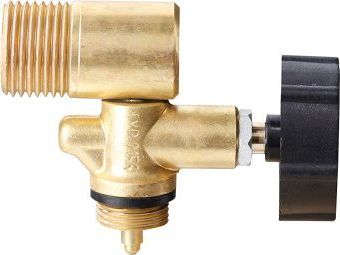 Jednocestný uzavírací ventil k 2kg propanbutanové lahvi s výstupním závitem W21,8L do boku.