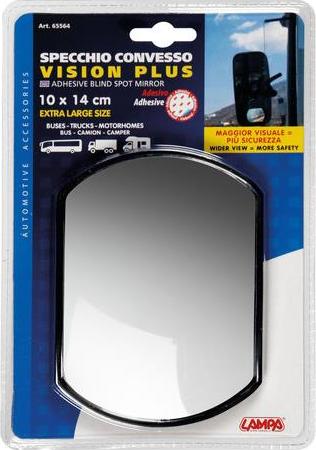Vhodné pro boční zrcátka. Rozšířuje oblast viditelnosti bočními zrcátky.<br/>Odstraňuje slepá místa, která nejsou viditelná bočními zrcátky<br/>rozměry 140x100 mm<br/>instalace nalepením